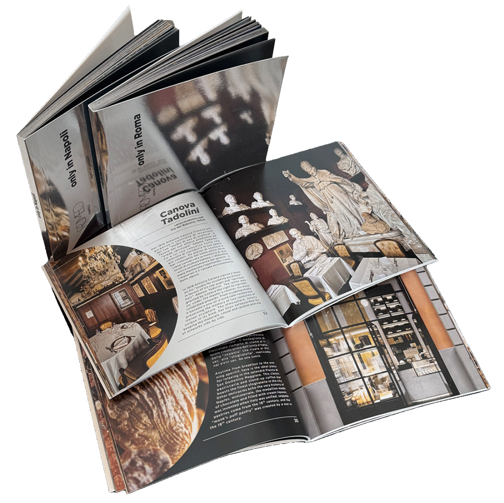 The City Guide books have been conceived for the VIP guests of the two 5 Stars Luxury hotels of the Collection enhancing the brand identity through a capting layout that alternates silver and black colors. We have selected the most relevant restaurants, boutiques, art galleries, and museums of the cities of Rome and Naples.