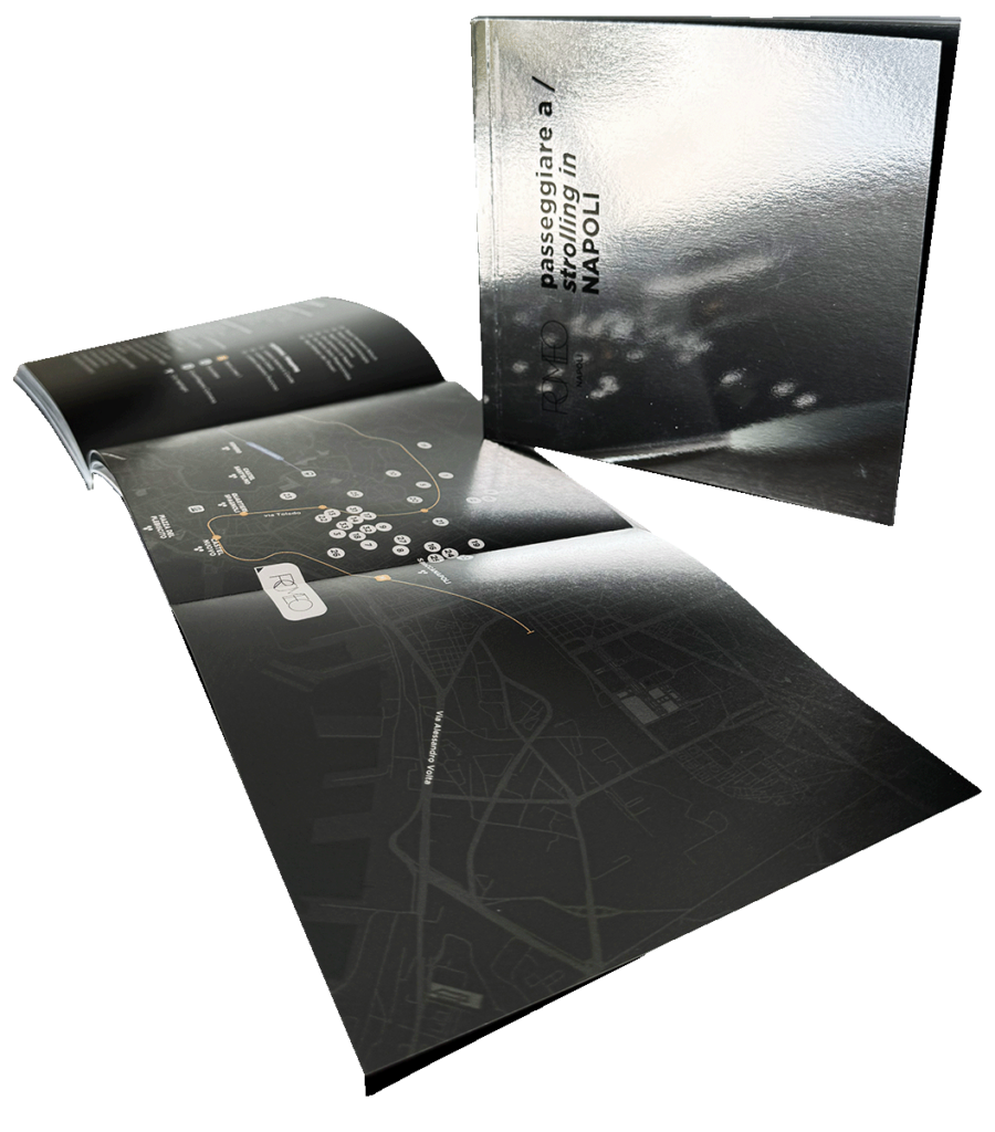 The book has been conceived for the the VIP guests of Romeo Napoli 5 Stars Luxury Hotel of the Collection enhancing the brand identity through a captivating layout that alternates silver and black colors. The city maps placed at the end of the book have been folded for easier fruition.
